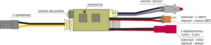 После установки подкала на модель можно произвести его окончательную подстройку “одним нажатием”. Имеется возможность опционального подключения кнопки "запуск" (входит в комплект подкала). Разъем для её подключения находится рядом с силовыми проводами. Если эту кнопку нажать на 0,5...1 сек и отпустить, это позволит перевести подкал в режим "запуск" - включить свечу на 20 сек, независимо от положения ручки канала “газ” на пульте управления. Если 20 сек после нажатия кнопки не истекли, повторное нажатие отключает режим "запуск" и переводит подкал в режим управления с пульта. По истечении 20 сек с момента нажатия подкал переходит в режим управления с пульта автоматически. Напряжение, подаваемое на свечу при этом уменьшается с 1,26 до 1,16 В.