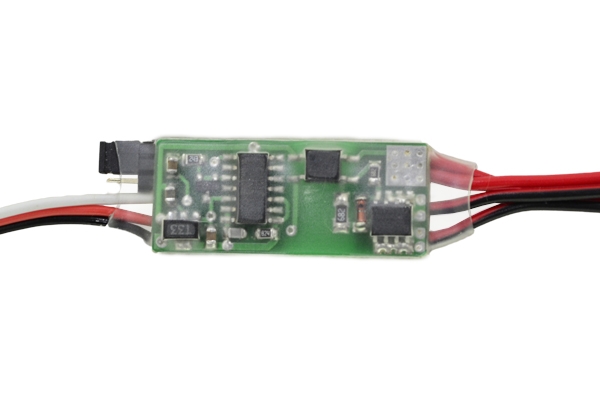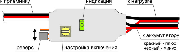 Управление устройством осуществляется по отдельному каналу, сигнальная часть питается от приемника, силовая - от внешнего источника. Силовая часть отделена от сигнальной при помощи оптрона.