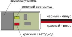 Ïðè âêëþ÷åíèè èíäèêàòîðà îí ñàìîòåñòèðóåòñÿ, ïîñëåäîâàòåëüíî âêëþ÷àÿ çåëåíûé è êðàñíûé ñâåòîäèîäû è èçäàåò îäèíî÷íûé áèï.