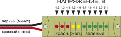 Èíäèêàòîð óñòàíàâëèâàåòñÿ íà áîðòó ìîäåëè è ïîäêëþ÷àåòñÿ â ñâîáîäíîå ãíåçäî ïðèåìíèêà ñî ñòàíäàðòîì  ðàçúåìà JR / Hitec ëèáî íåïîñðåäñòâåííî ê áîðòîâîìó àêêóìóëÿòîðó.  Èíäèöèðóåò 10 çíà÷åíèé íàïðÿæåíèÿ áîðòîâîãî àêêóìóëÿòîðà (4,2 / 4,3 / 4,4 / 4,5 / 4,6 / 4,7 / 4,8 / 4,9 / 5,0 / 5,1 Â).