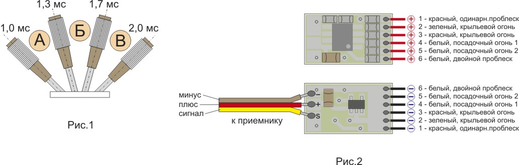 Äàííûé ñâåòîâîé ìîäóëü ïðåäíàçíà÷åí äëÿ óïðàâëåíèÿ êîìïëåêòîì áîðòîâûõ àýðîíàâèãàöèîííûõ è ïîñàäî÷íûõ îãíåé íà ëåòàþùèõ ìèêðîìîäåëÿõ. Ñàìè àýðîíàâèãàöèîííûå è ïîñàäî÷íûå îãíè â êîìïëåêò íå âõîäÿò è èçãîòàâëèâàþòñÿ ñàìîñòîÿòåëüíî èç óëüòðàÿðêèõ SMD èëè DIP ñâåòîäèîäîâ ñîîòâåòñòâóþùåãî öâåòà. Óïðàâëåíèå ñâåòîâûì ìîäóëåì è ïîäêëþ÷åííûìè ê íåìó ñâåòîäèîäàìè îñóùåñòâëÿåòñÿ ïî âûäåëåííîìó äëÿ ýòîé öåëè êàíàëó óïðàâëåíèÿ (ïðèåìíèêà - ïåðåäàò÷èêà). Âêëþ÷åíèå è âûêëþ÷åíèå ãðóïï îãíåé (ïðè âêëþ÷åííîì ïðèåìíèêå) îïðåäåëÿåòñÿ ïîëîæåíèåì ðó÷êè èëè òðåõïîçèöèîííîãî òóìáëåðà ñîîòâåòñòâóþùåãî êàíàëà ïåðåäàò÷èêà.