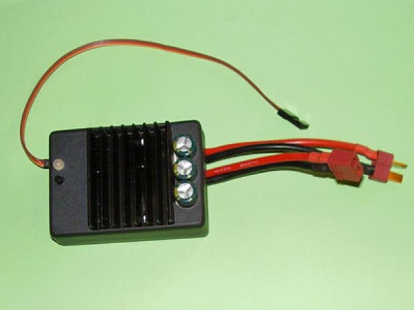 Регулятор предназначен для совместной работы с различными типами силовых аккумуляторов в широком диапазоне питающих напряжений, поэтому не имеет встроенного ВЕС и не содержит схему отсечки по питанию. Питание сигнальной части осуществляется от приемника, силовой части - от ходового аккумулятора. При необходимости применения общего питания от ходового аккумулятора следует использовать внешний линейный или импульсный ВЕС и индикатор состояния аккумулятора на соответствующий тип и напряжение. При подключении силового питания регулятор деактивирован. Для активации следует установить ручку газа в нейтраль.