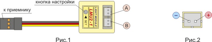 Управление световым модулем и подключенными к нему светодиодами осуществляется по выделенному для этой цели каналу управления (приемник-пульт). Включение и выключение нагрузки в каналах “А” и “В” происходит одновременно. Точка включения-выключения и рабочий сектор должны быть заранее запрограммированы.