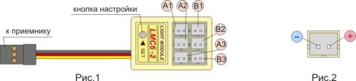 Начальные установки блока : точка включения фар - 1,5 мс, рабочий сектор 1,5-2,0 мс, нерабочий сектор 1,0-1,5 мс. Блок программируется кнопкой “SET”.
