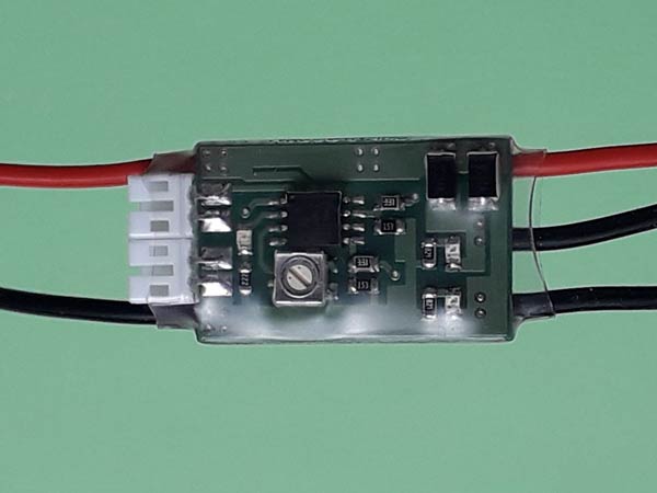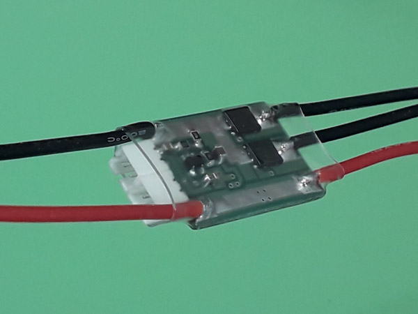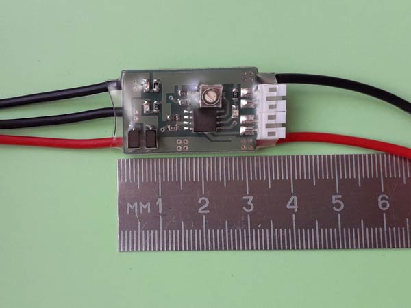 ТЕХНИЧЕСКИЕ ХАРАКТЕРИСТИКИ: Габариты (без проводов) - 37 х 19 х 8 мм Постоянный потребляемый ток - 2 A Кратковременный ток - 10 A Импульсный ток - 20 А Напряжение внешнего аккумулятора - 6,1...8,4 В Рекомендуемая емкость аккумулятора - 1,5 ... 3,5 А.ч